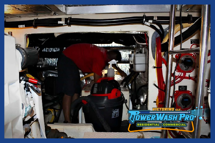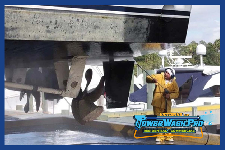 The first thing you’II need to do befare you power wash your boat is to remove any canopies, seat cushions or other removable equipment. This is important because the high-pressure water from your washer could potentially damage or ruin these types of items.