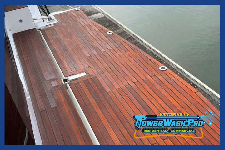 Refresh your boat’s teak decking with Power Wash Pro Boat Services! With regular exposure to the elements, teak decking can fade and lose its warm, natural color.
