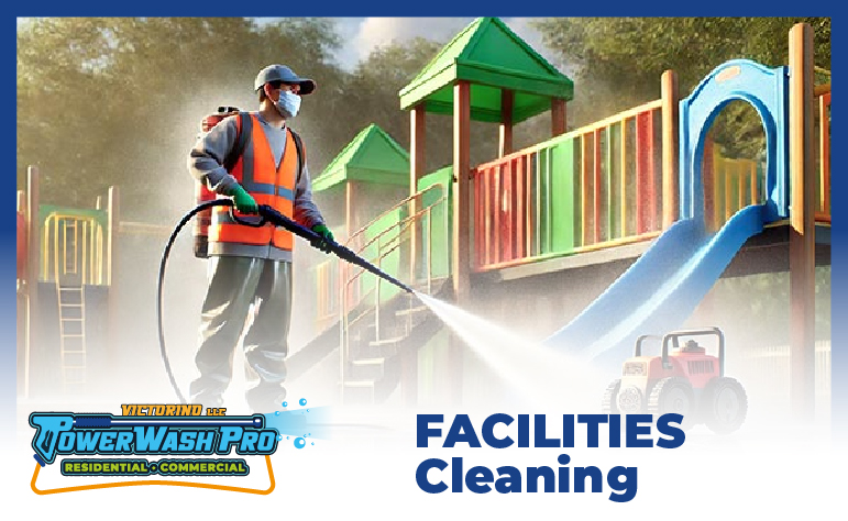 We utilize hot water rinsing with high pressure to effectively eliminate all foreign particles and debris, leaving your Facility spotless and maintained. Trust VICTORINO PowerWash Pro far all your Facility Cleaning needs.