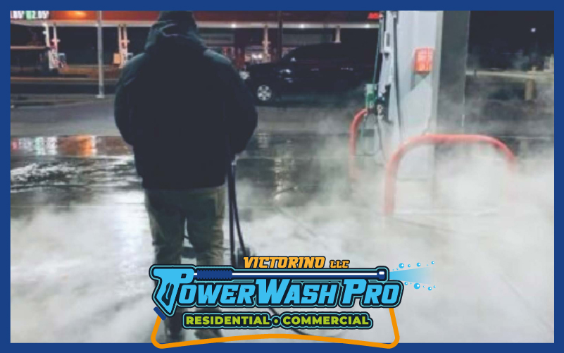 Victorino PowerWash Pro meticulous cleaning process begins with the application of foaming industrial strength degreasers, covering all surfaces to break down stubborn grime and grease. Next, their technicians conducta surface cleaning of all flat top concrete or asphalt areas, ensuring a thorough and even clean across the entire surface. Finally, nthe hot / cold water pressure washing unit is unleashed to rinse away all remaining debris, leaving behind nothing but a pristine finish.
