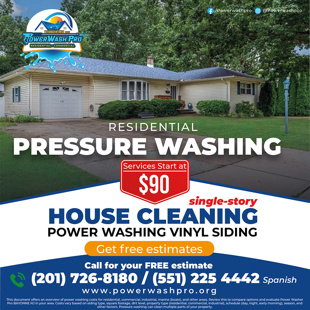 POWER WASH PRO Bayonne • New Jersey offers pressure washing for all your vertical services.